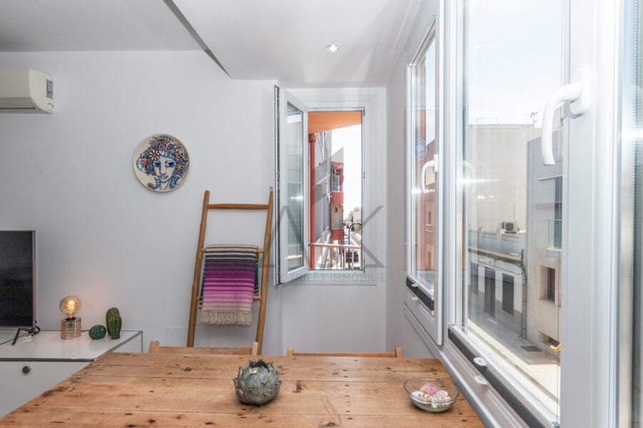 In einer ruhigen Straße des begehrten Viertels Es Molinar, nur wenige Schritte vom Meer und ca 4 km zur Kathedrale entfernt, präsentiert sich dieses Apartment als echtes Juwel für Liebhaber des mediterranen Lebensstils.