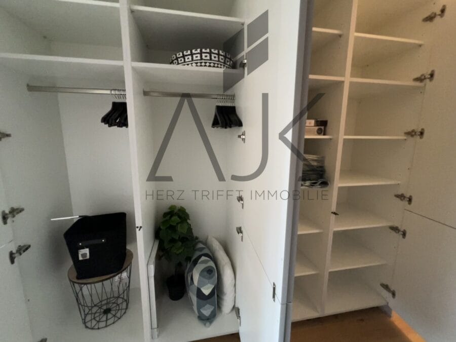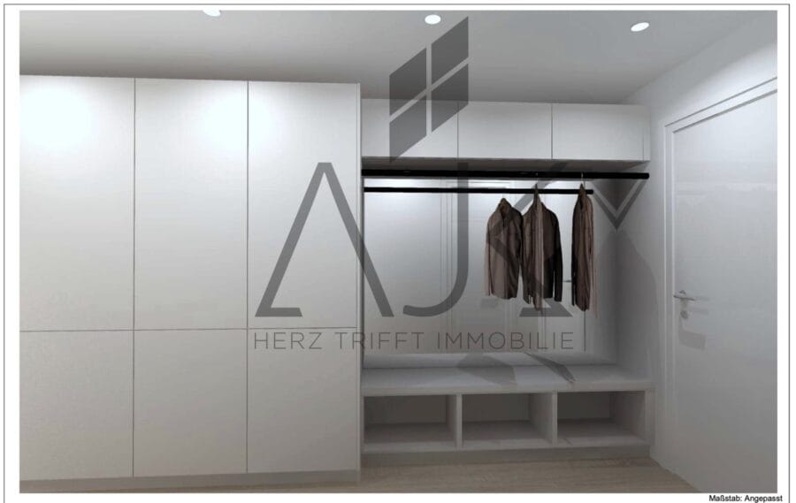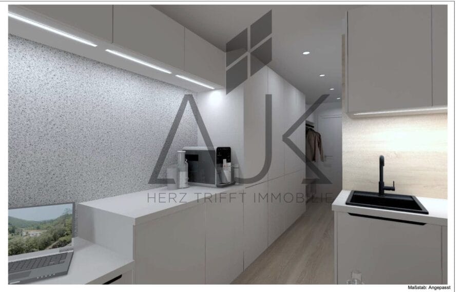 + Interieurausstattung: Einbauschränke, Schreibtisch, Regale, Küche