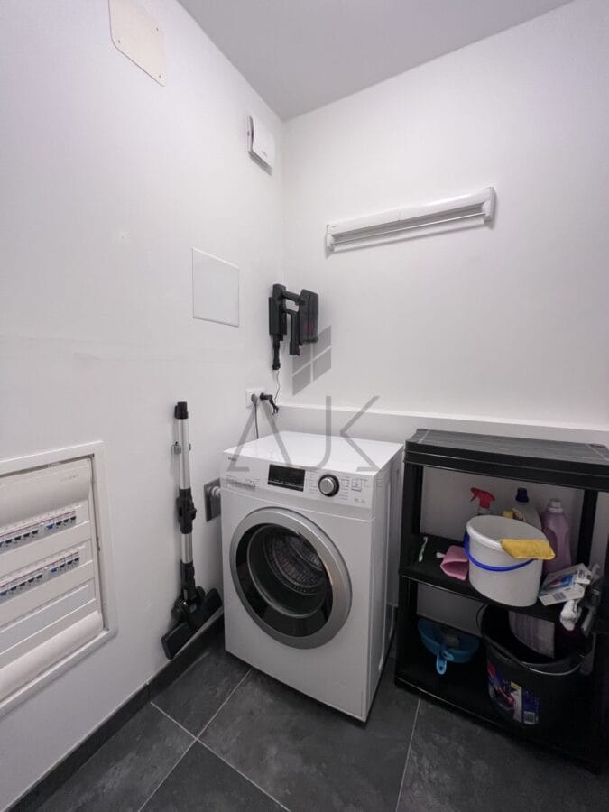 + Abstellkammer mit Waschvollautomat integr. Trockner, Bügelbrett, etc.