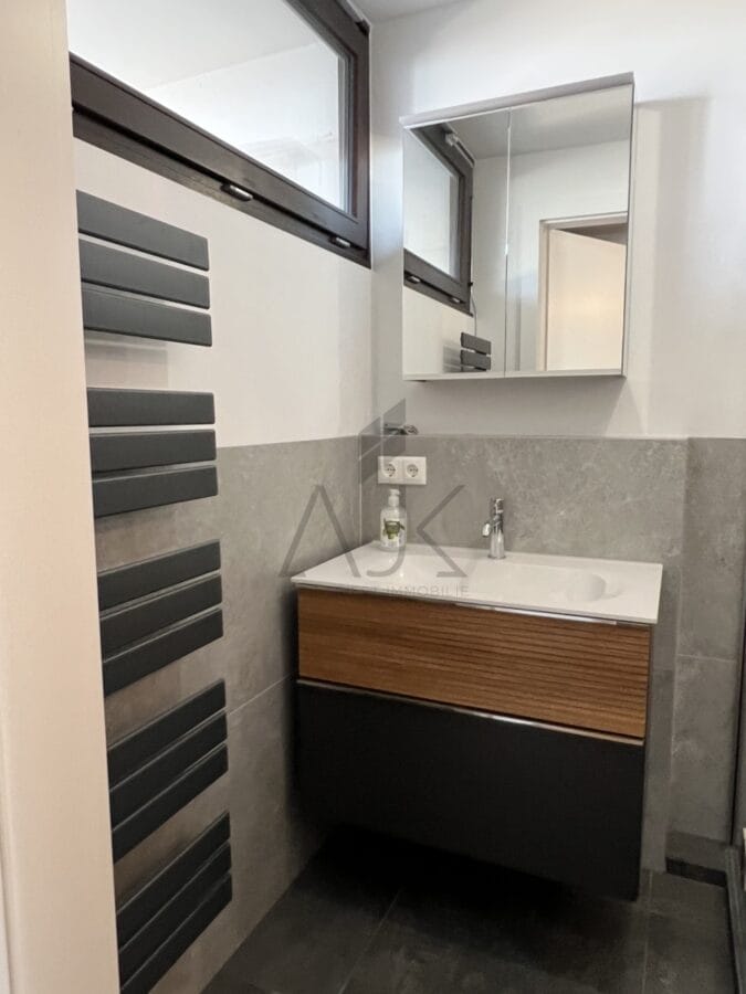 + Edles Bad mit Fenster, Walk-in-Dusche & schwarzen Design-Elementen