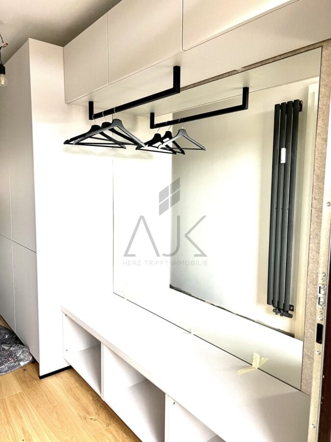 Flur komplett gestaltet mit 4 Kleiderschränken, Ablagen, Sitzmöglichkeit